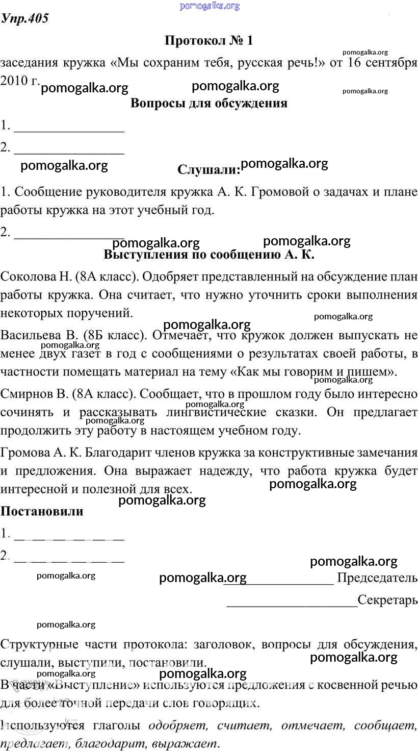 Готовые ответы - Русский язык 8 класс Тростенцова Л.А. - упражнение № 405