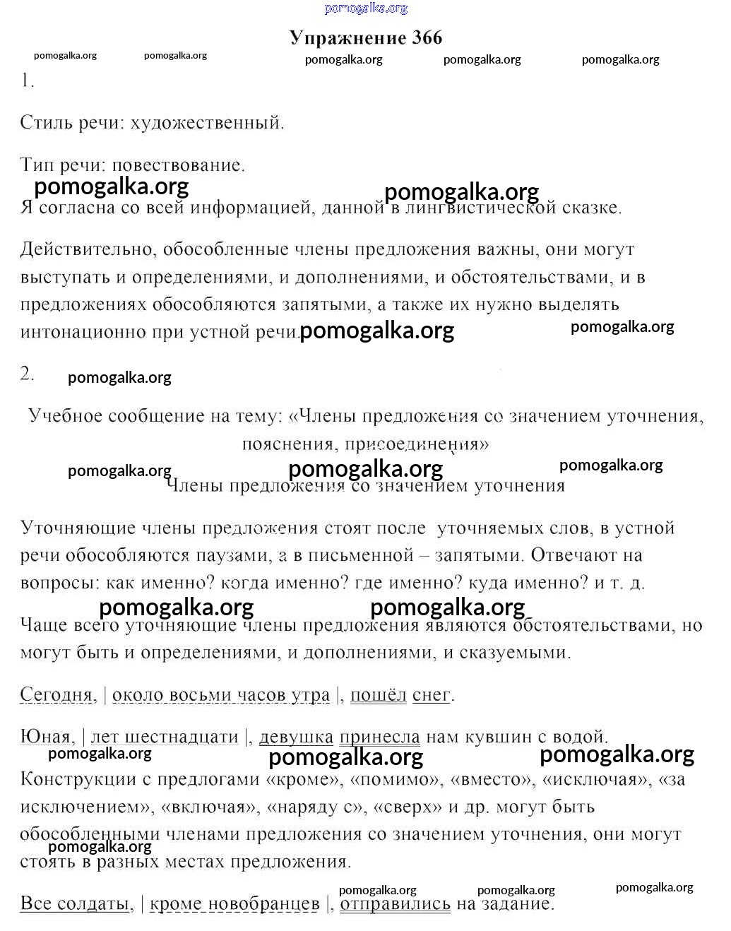 Готовые ответы - Русский язык 8 класс Мурина Л.A - упражнение 366