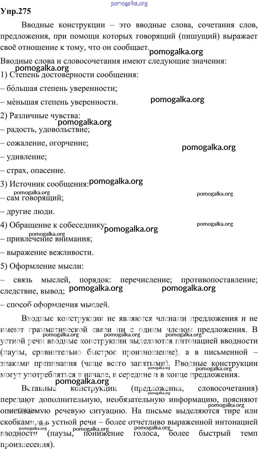 Готовые ответы - Русский язык 8 класс Разумовская М.М. - упражнение 275