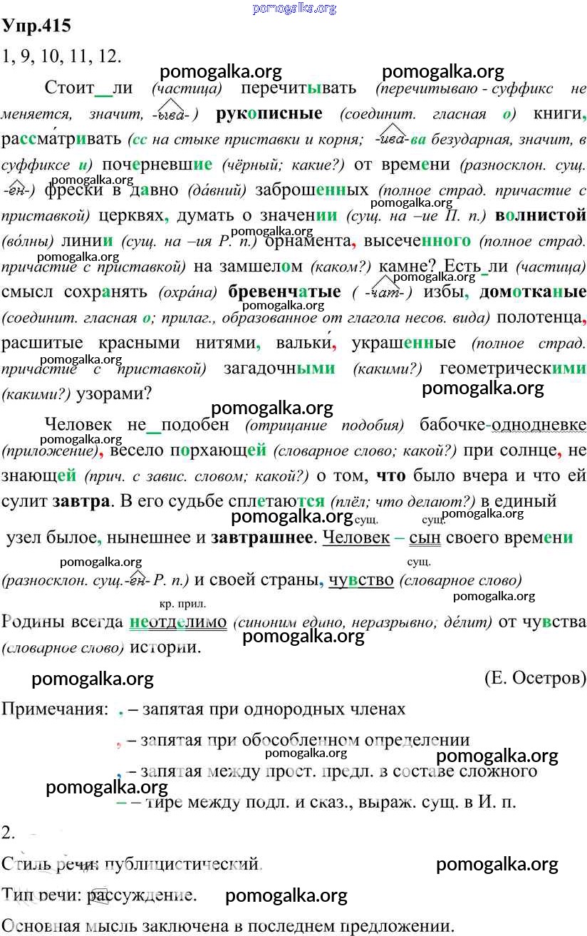 Готовые ответы - Русский язык 8 класс Разумовская М.М. - упражнение 415