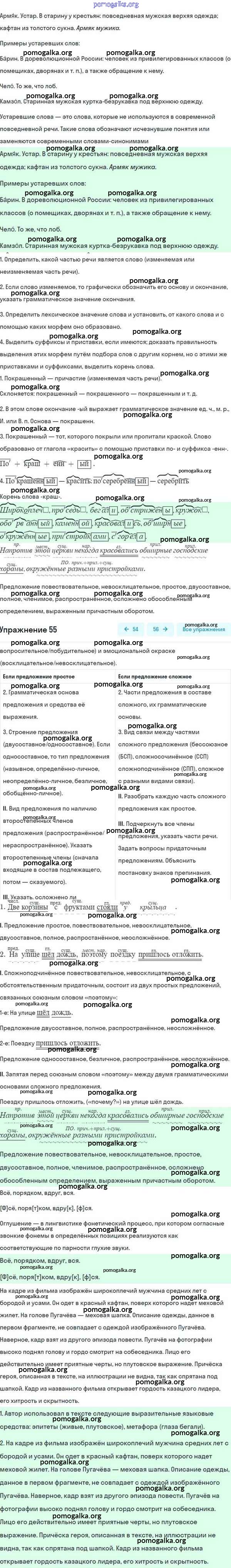 Готовые ответы - Русский язык 8 класс Разумовская М.М. - упражнение 55