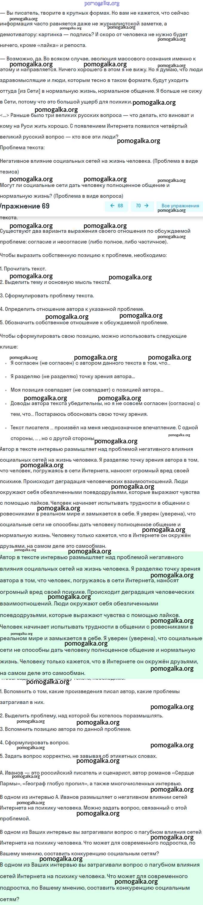 Готовые ответы - Русский язык 8 класс Рыбченкова Л.М. - упражнение 69