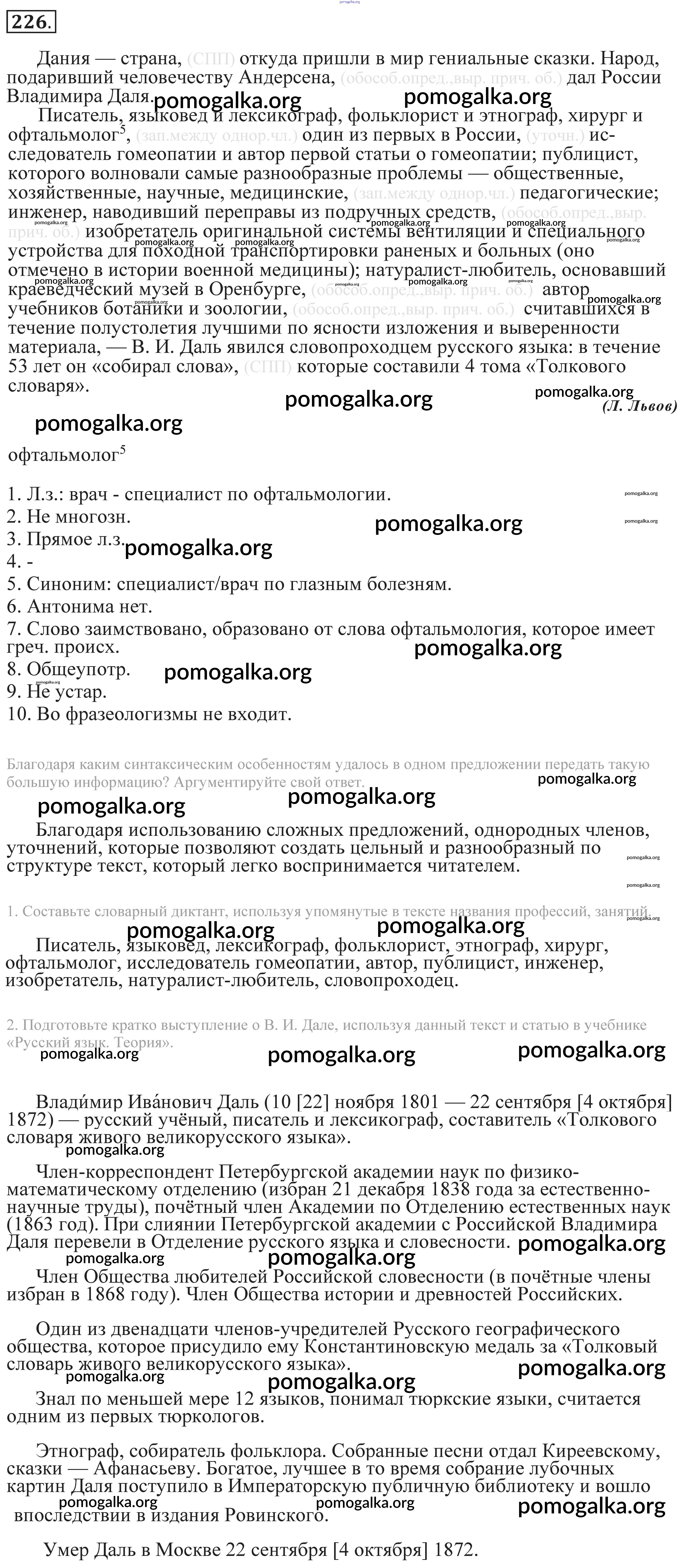 Готовые ответы - Русский язык 9 класс практика Пичугов Ю.С. - упражнение 226