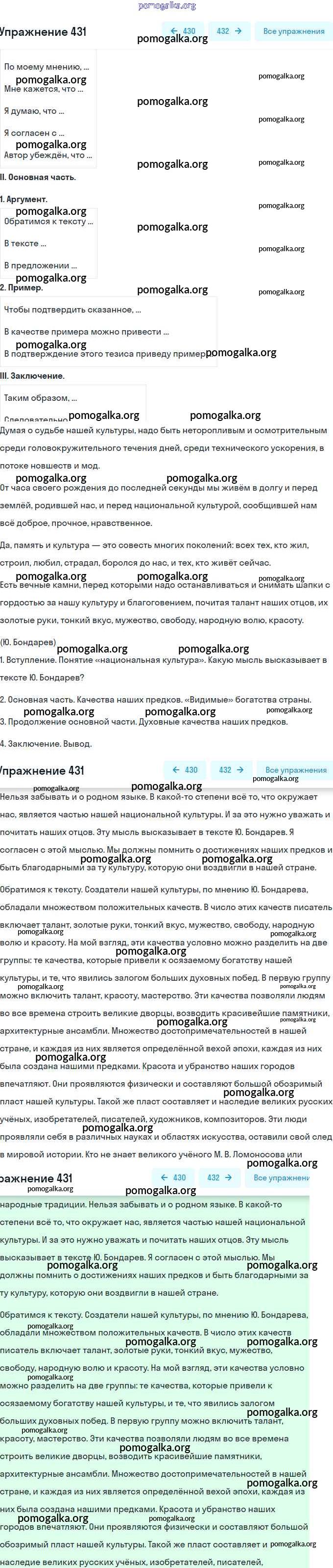 Готовые ответы - Русский язык 9 класс практика Пичугов Ю.С. - упражнение 431