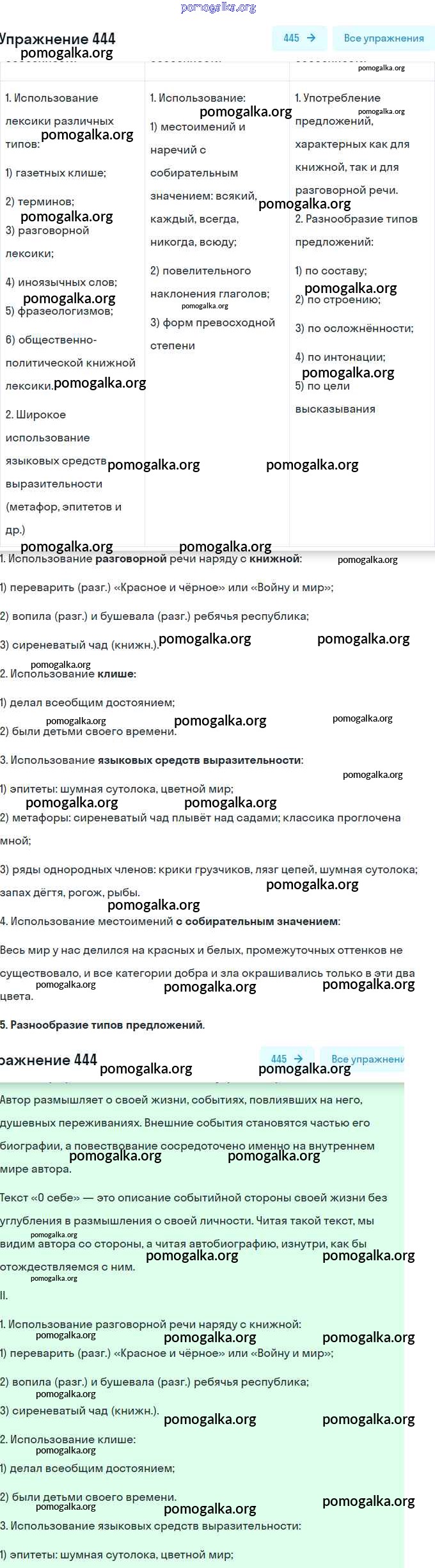 Готовые ответы - Русский язык 9 класс практика Пичугов Ю.С. - упражнение 444