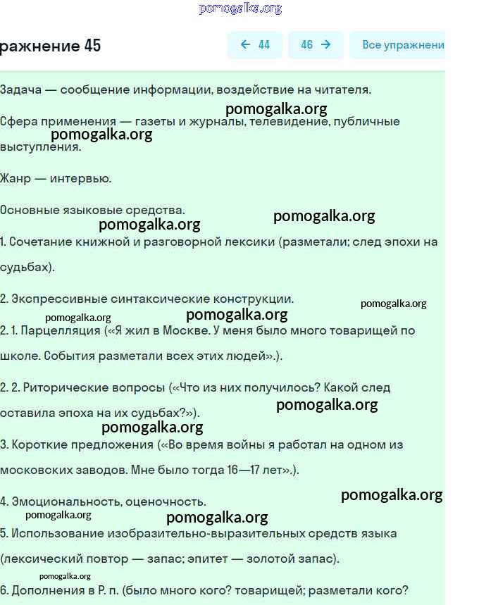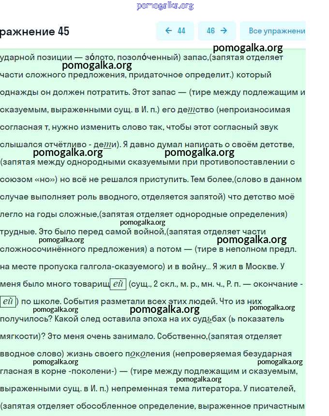 Готовые ответы - Русский язык 9 класс практика Пичугов Ю.С. - упражнение 45