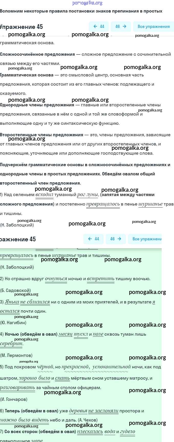 Готовые ответы - Русский язык 9 класс рабочая тетрадь Литвинова М.М. - упражнение 45