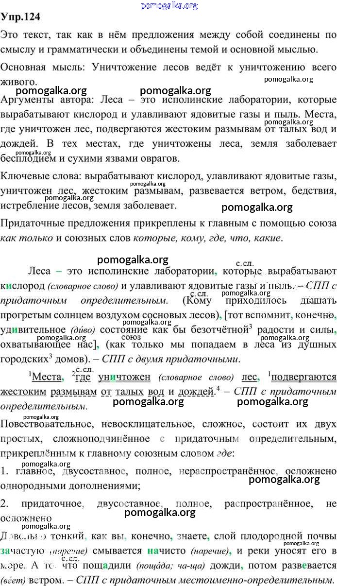 Готовые ответы - Русский язык 9 класс Бархударов С.Г. - упражнение 124