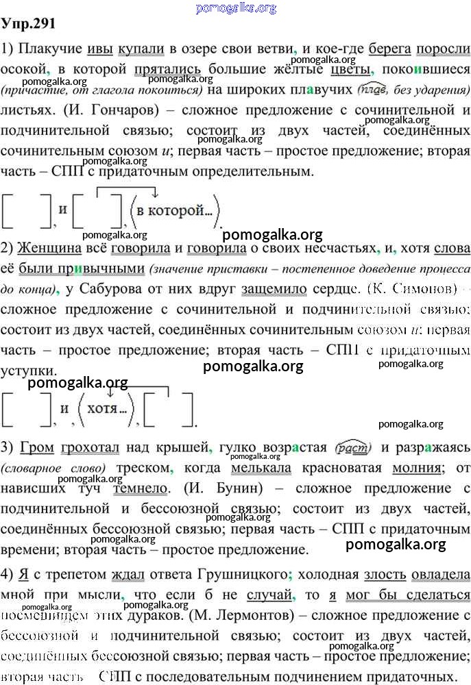 Готовые ответы - Русский язык 9 класс Бархударов С.Г. - упражнение 291
