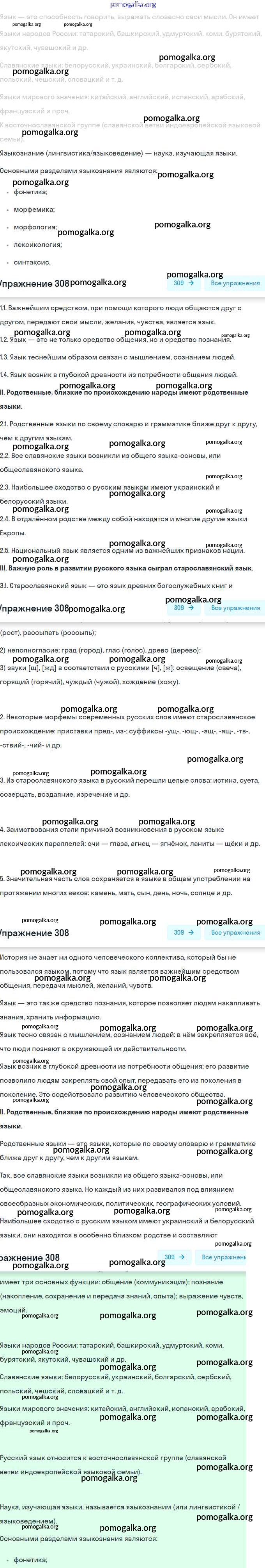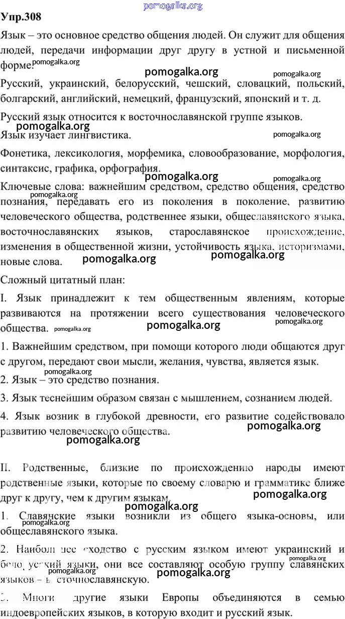 Готовые ответы - Русский язык 9 класс Бархударов С.Г. - упражнение 308
