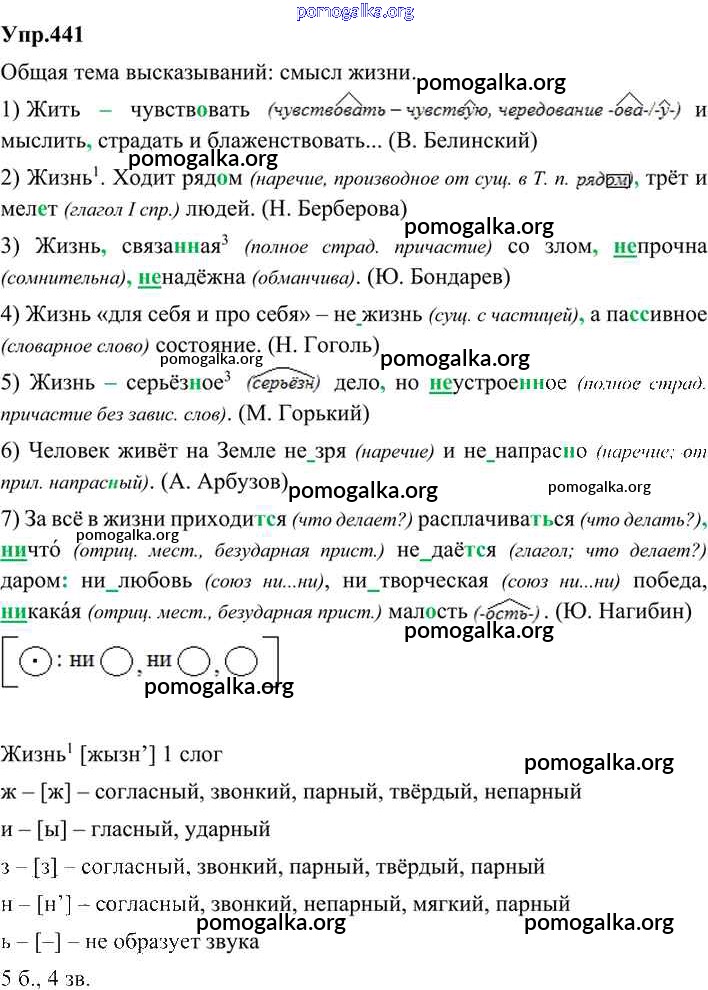 Готовые ответы - Русский язык 9 класс Бархударов С.Г. - упражнение 441