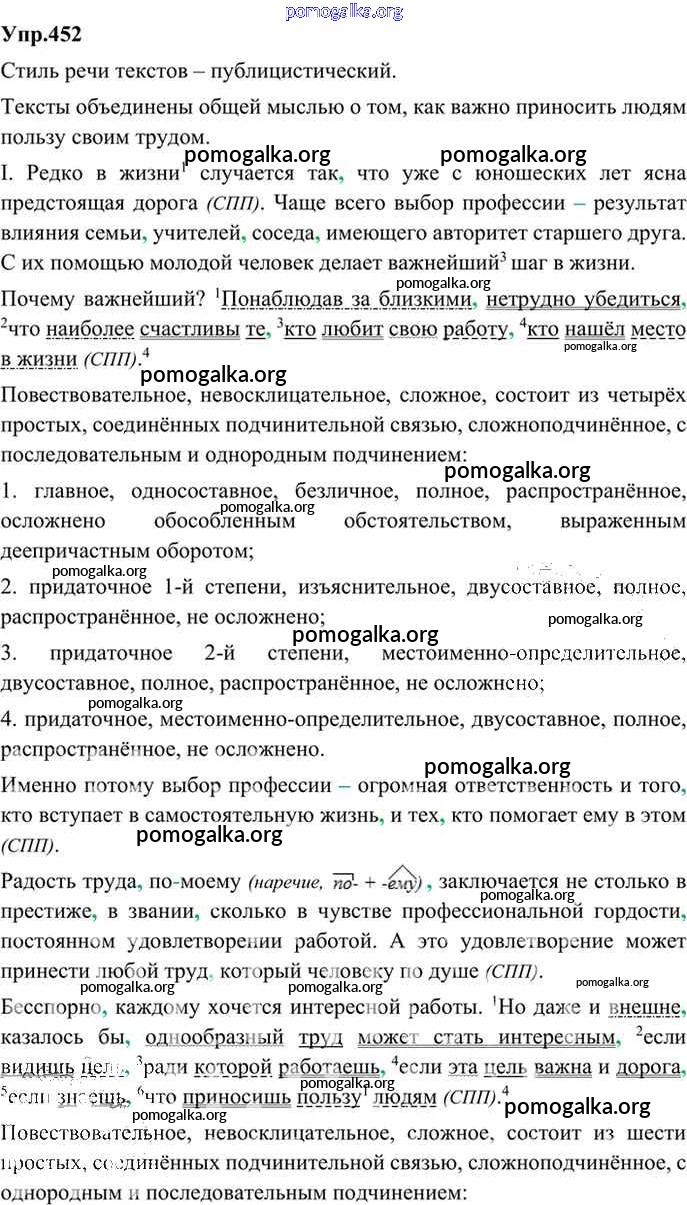 Готовые ответы - Русский язык 9 класс Бархударов С.Г. - упражнение 452