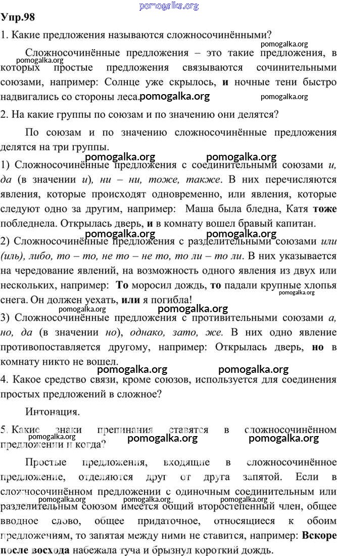 Готовые ответы - Русский язык 9 класс Бархударов С.Г. - упражнение 98