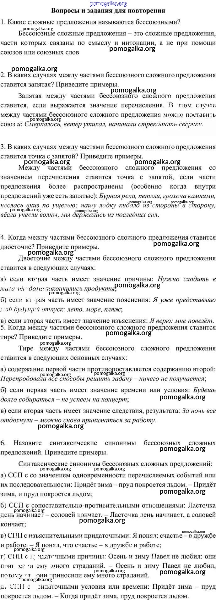 Готовые ответы - Русский язык 9 класс Бархударов С.Г. - вопросы и задания для повторения стр.138