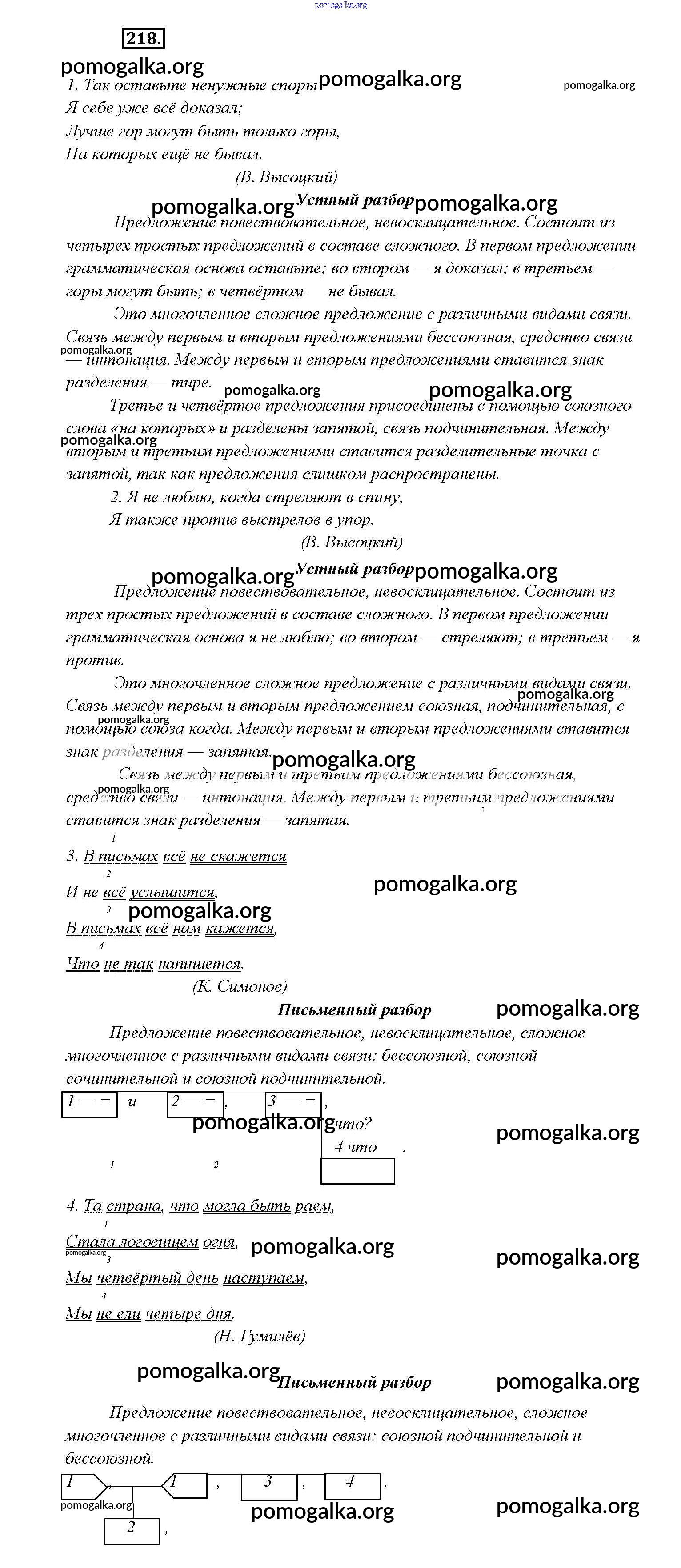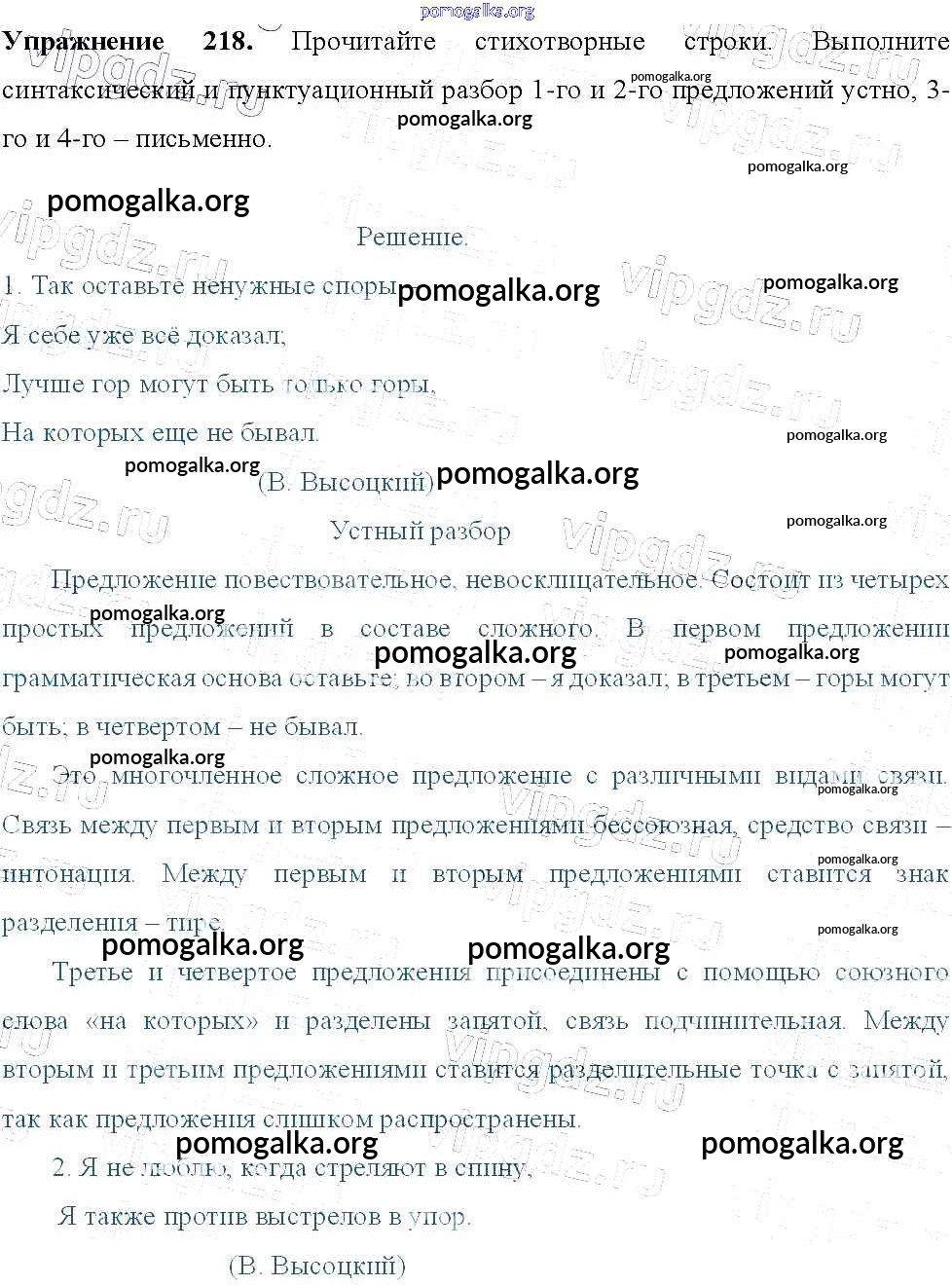 Готовые ответы - Русский язык 9 класс Тростенцова Л.А. - упражнение 218