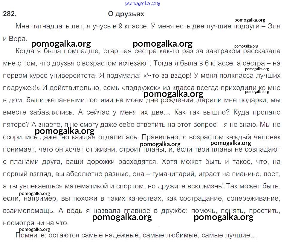 Готовые ответы - Русский язык 9 класс Тростенцова Л.А. - упражнение 282