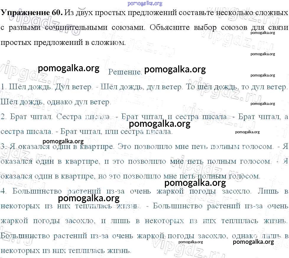 Готовые ответы - Русский язык 9 класс Тростенцова Л.А. - упражнение 60