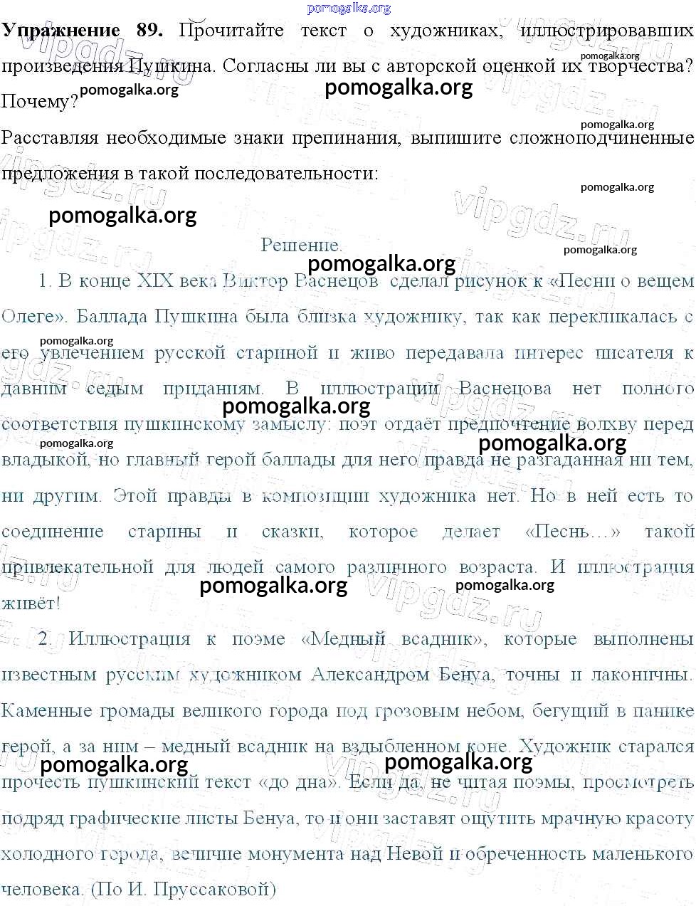 Готовые ответы - Русский язык 9 класс Тростенцова Л.А. - упражнение 89