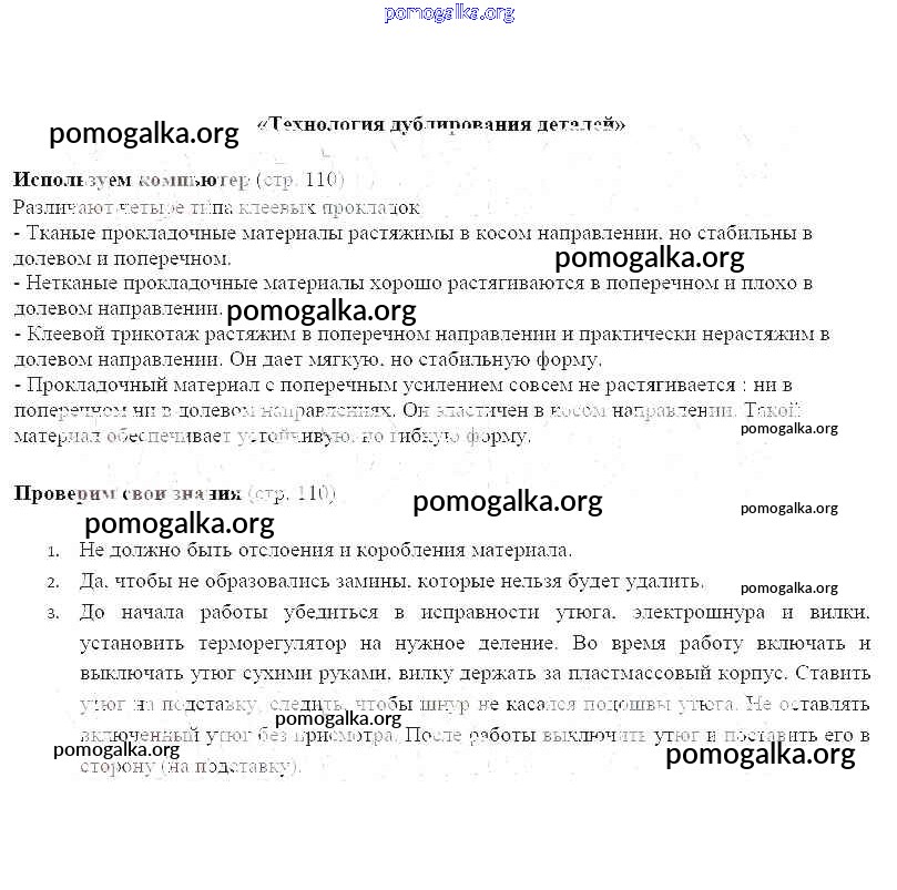 Готовые ответы - Технология 6 класс Синица Н.В. - страница 110
