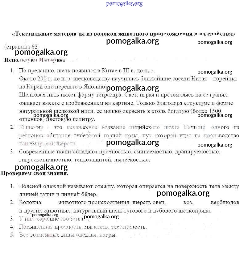 Готовые ответы - Технология 7 класс Синица Н.В. - страница 62